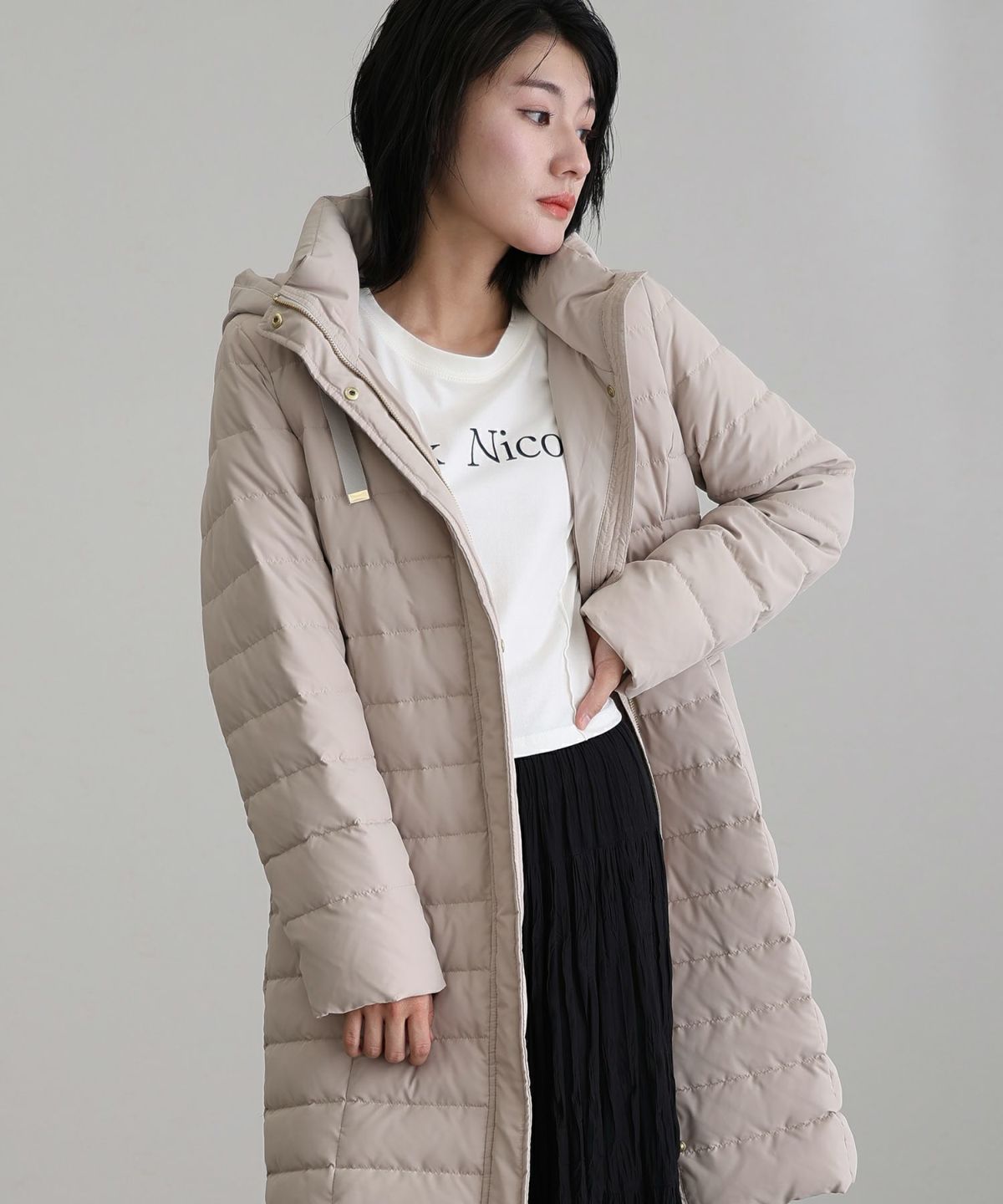 首元もあたたかいロングダウンジャケット