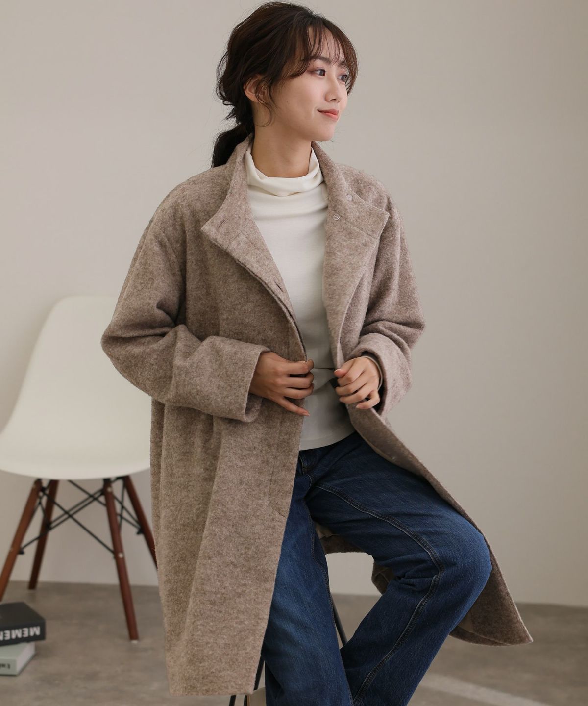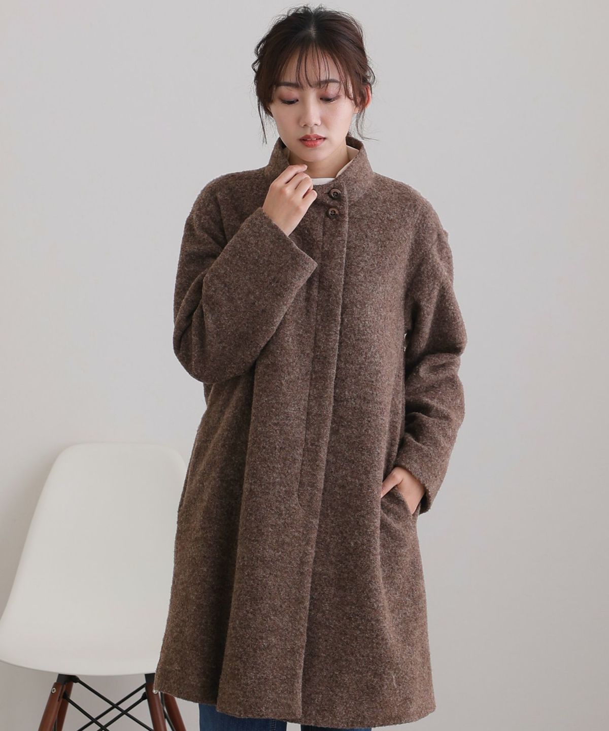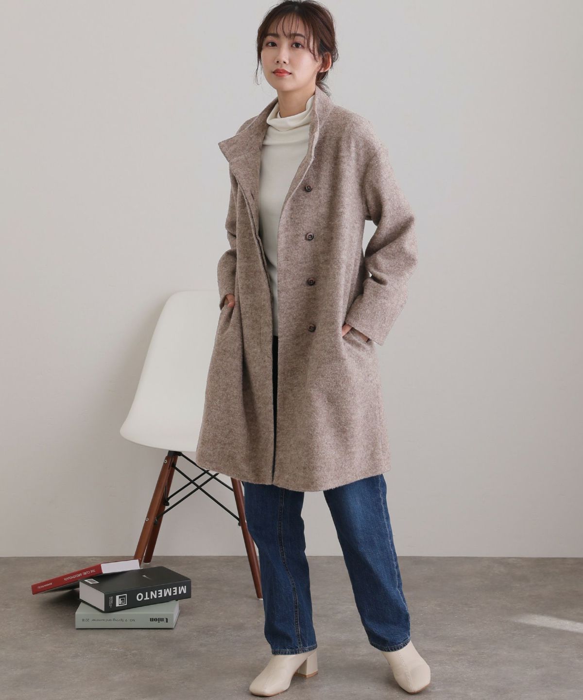 大人な印象のスタンドカラーコート