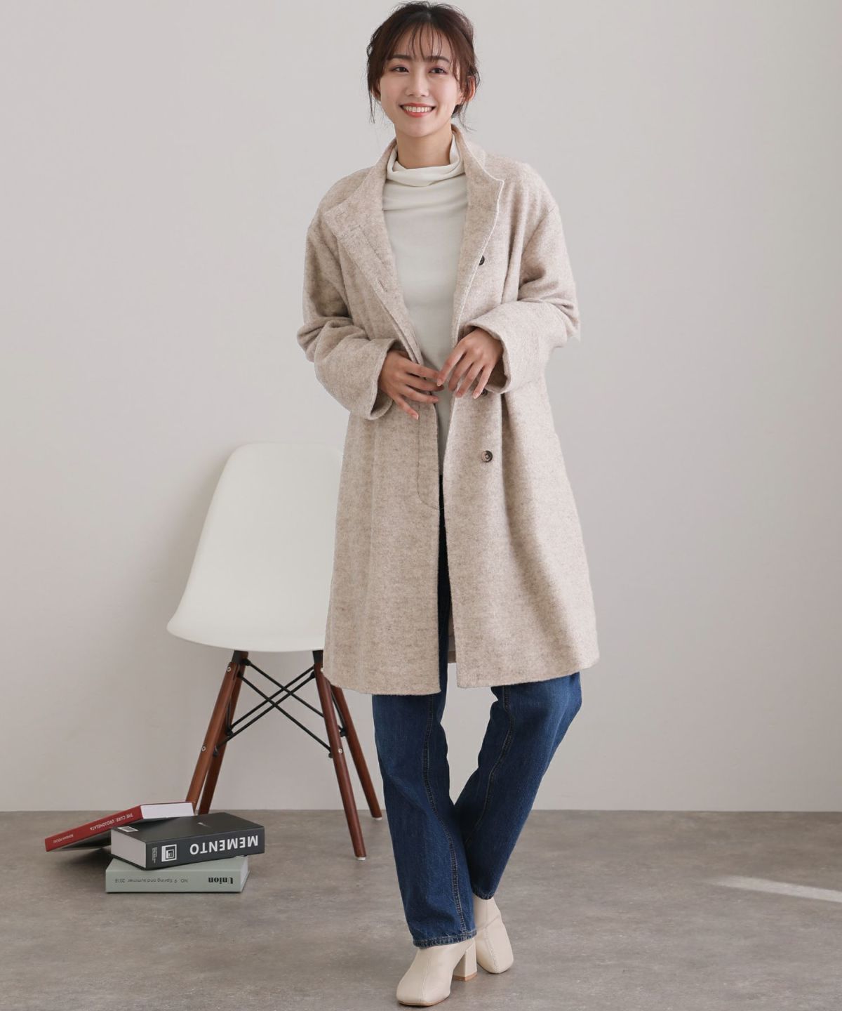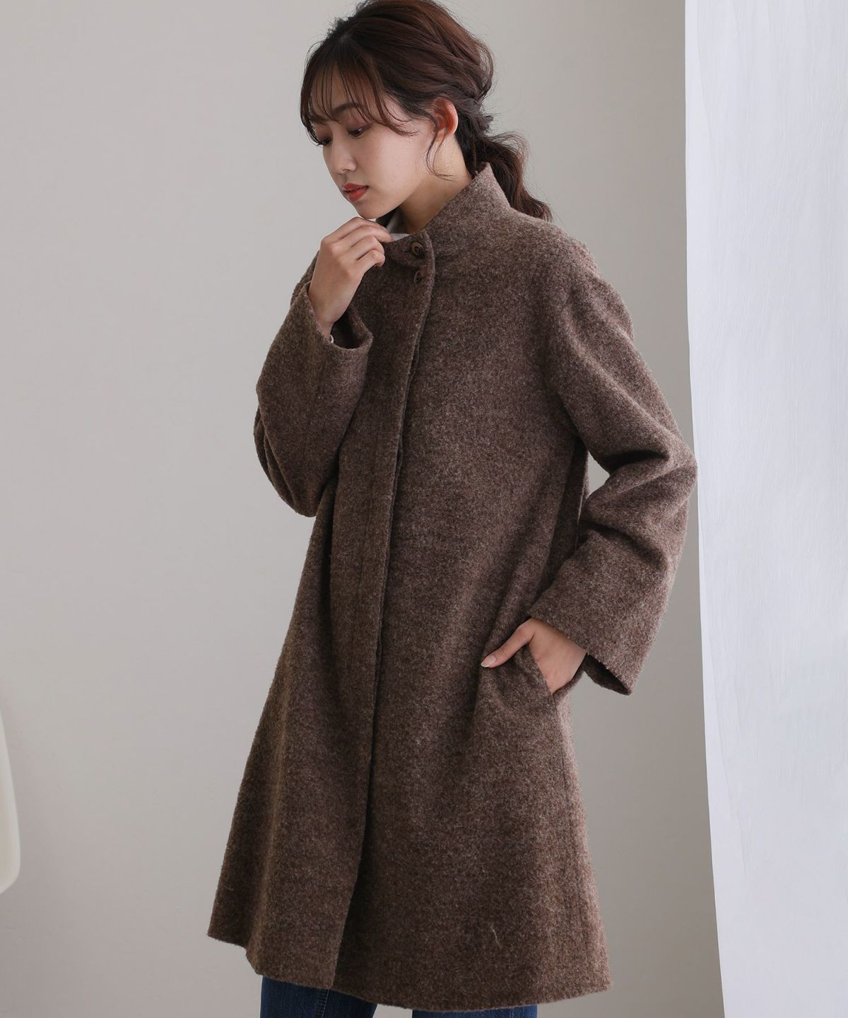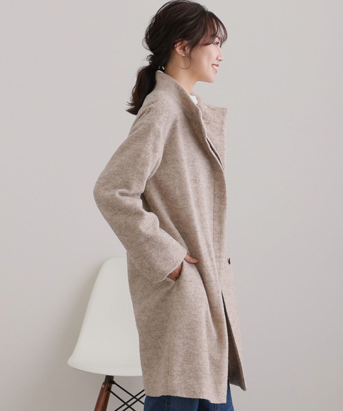 大人な印象のスタンドカラーコート