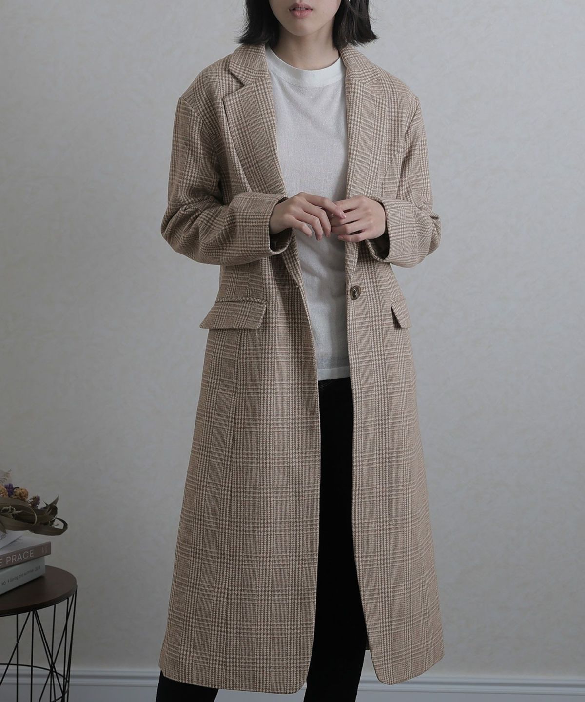 マニッシュな魅力のあるチェック柄のロングコート。シンプルなシルエットなのでどんなコーデにも羽織ることができるアイテムです。