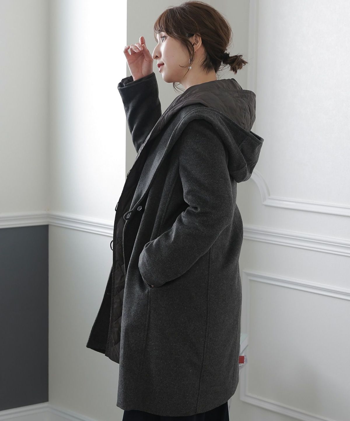 ウールコートは毛31%使用の暖かい一枚。そしてダウン90%のキルティングを合わせれば真冬にも防寒性ばっちりです。