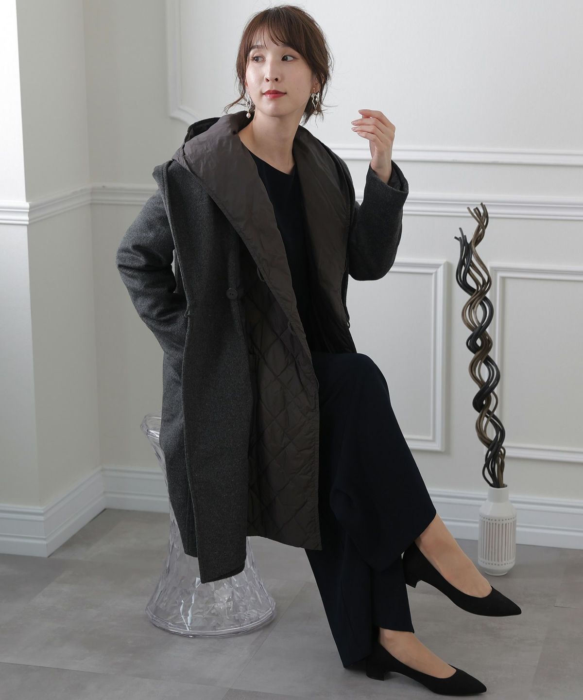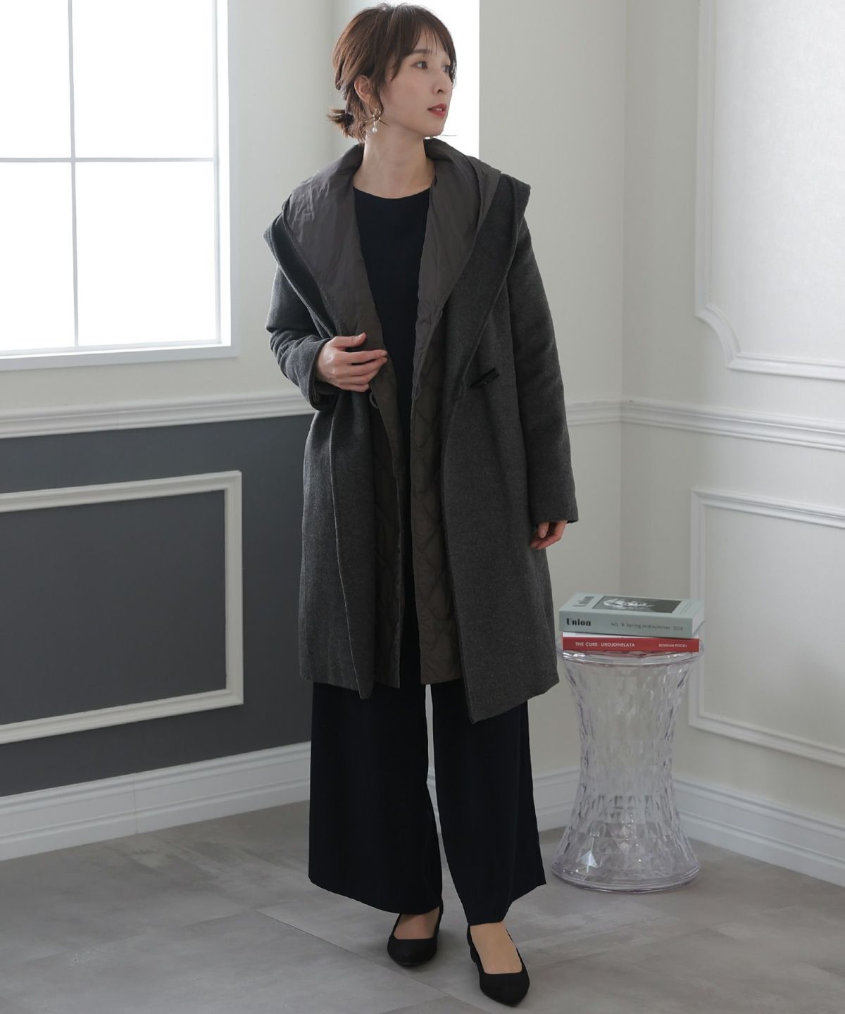 ウール31%のガウンコートとキルティングダウンがセットになったコート。重ねても単体でも着られ、さらにダウンはリバーシブルでの着用もできます。