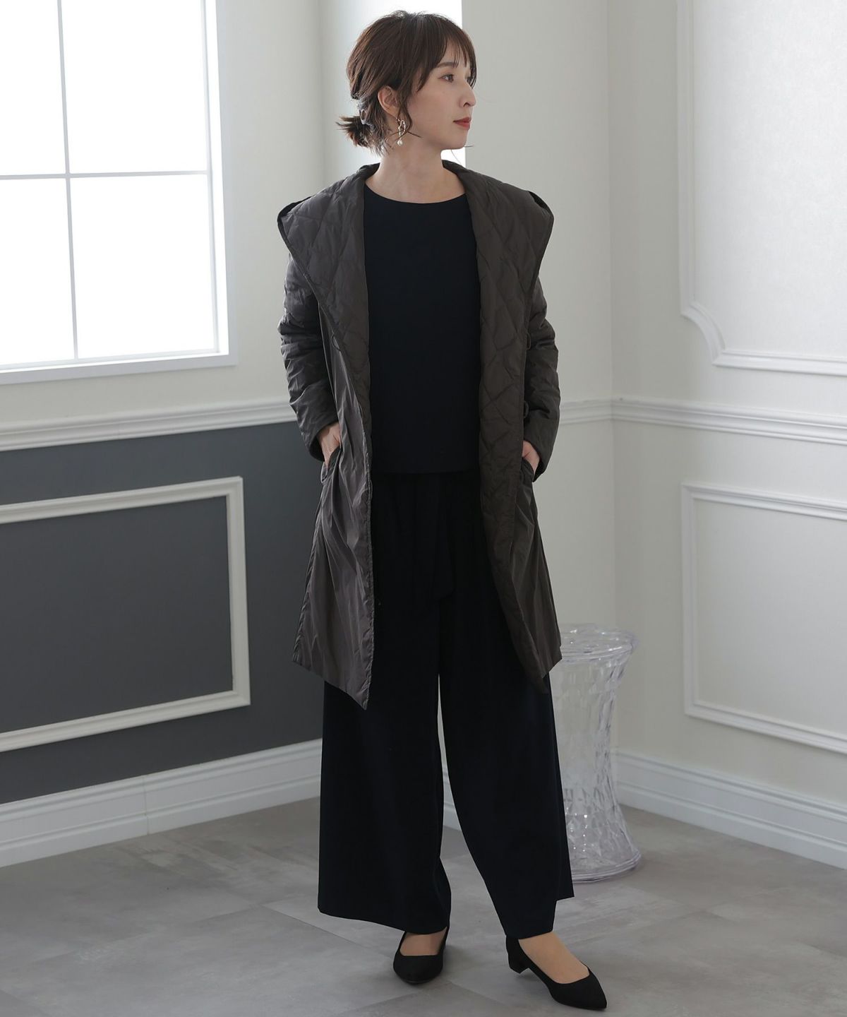 他の画像を見る キルティングの切り替えが可愛いロングコート キルティング使いフーテッドコート SALE 1~3営業日以内発送 定価 ¥ 23,699 販売価格 ¥ 18,959 税込 カートに入れる お気に入りに登録する