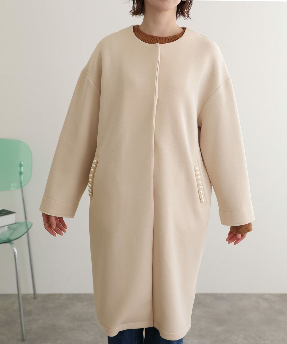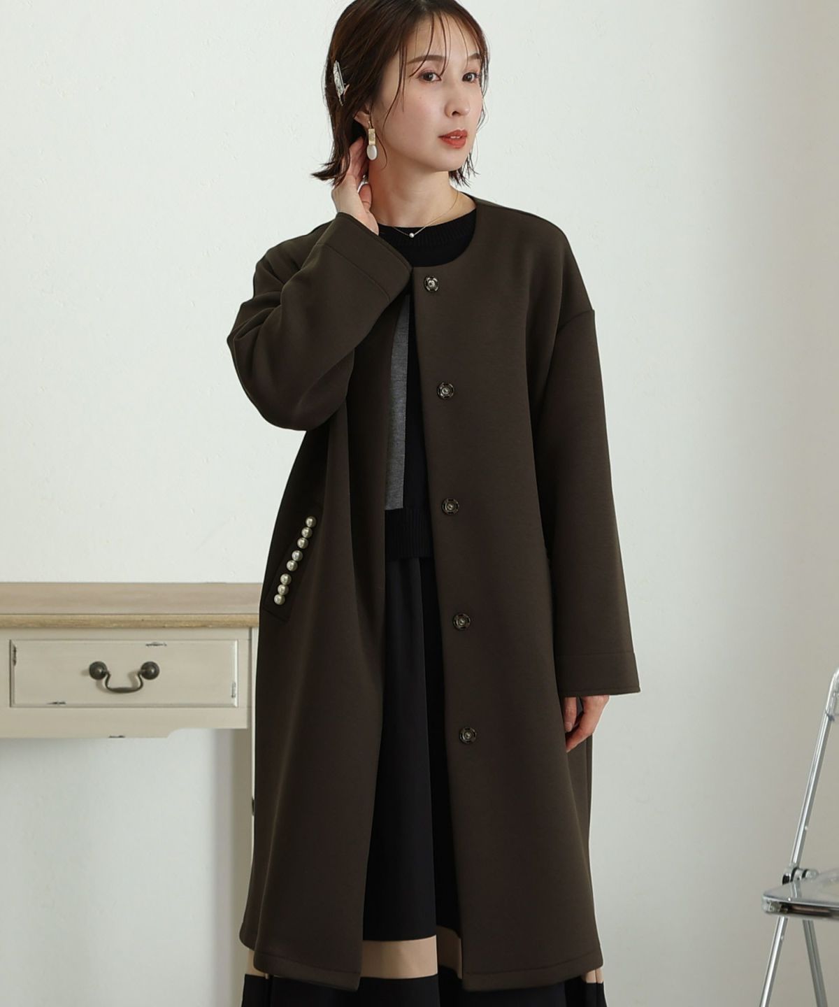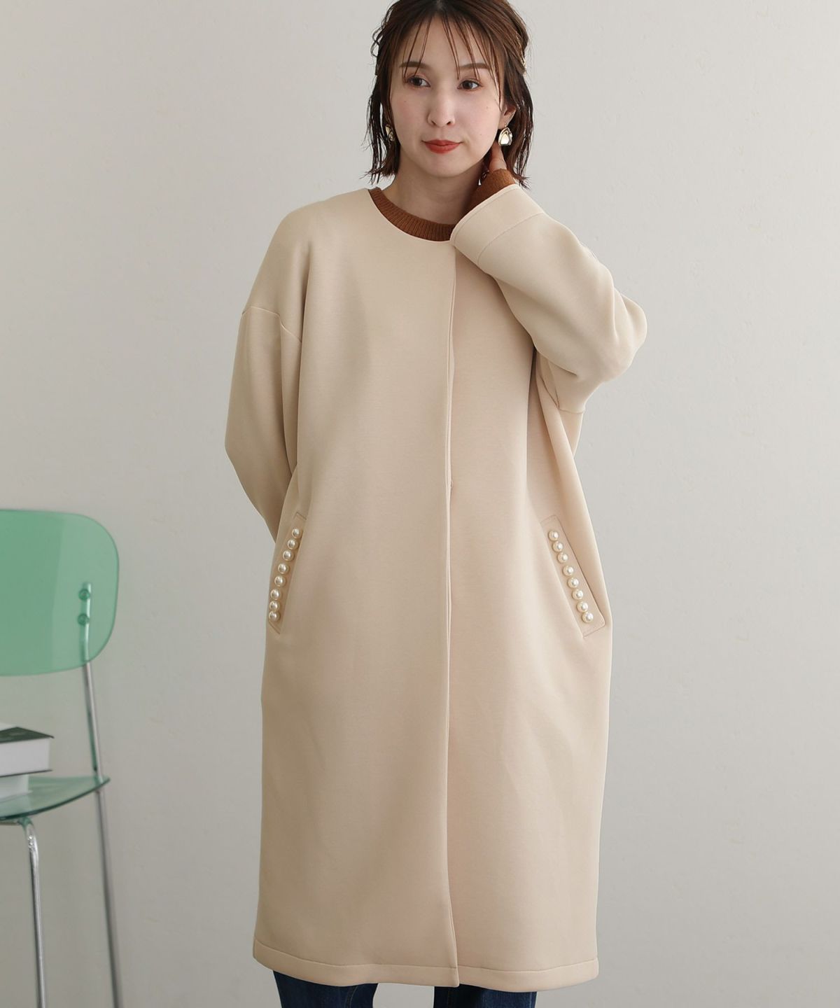 他の画像を見る かわいくあたたかなやわらか素材 パールデザインノーカラーコート SALE 1~3営業日以内発送 販売価格 ¥ 19,800 税込 会員特別価格 ¥ 18,800 税込 カートに入れる お気に入りに登録する