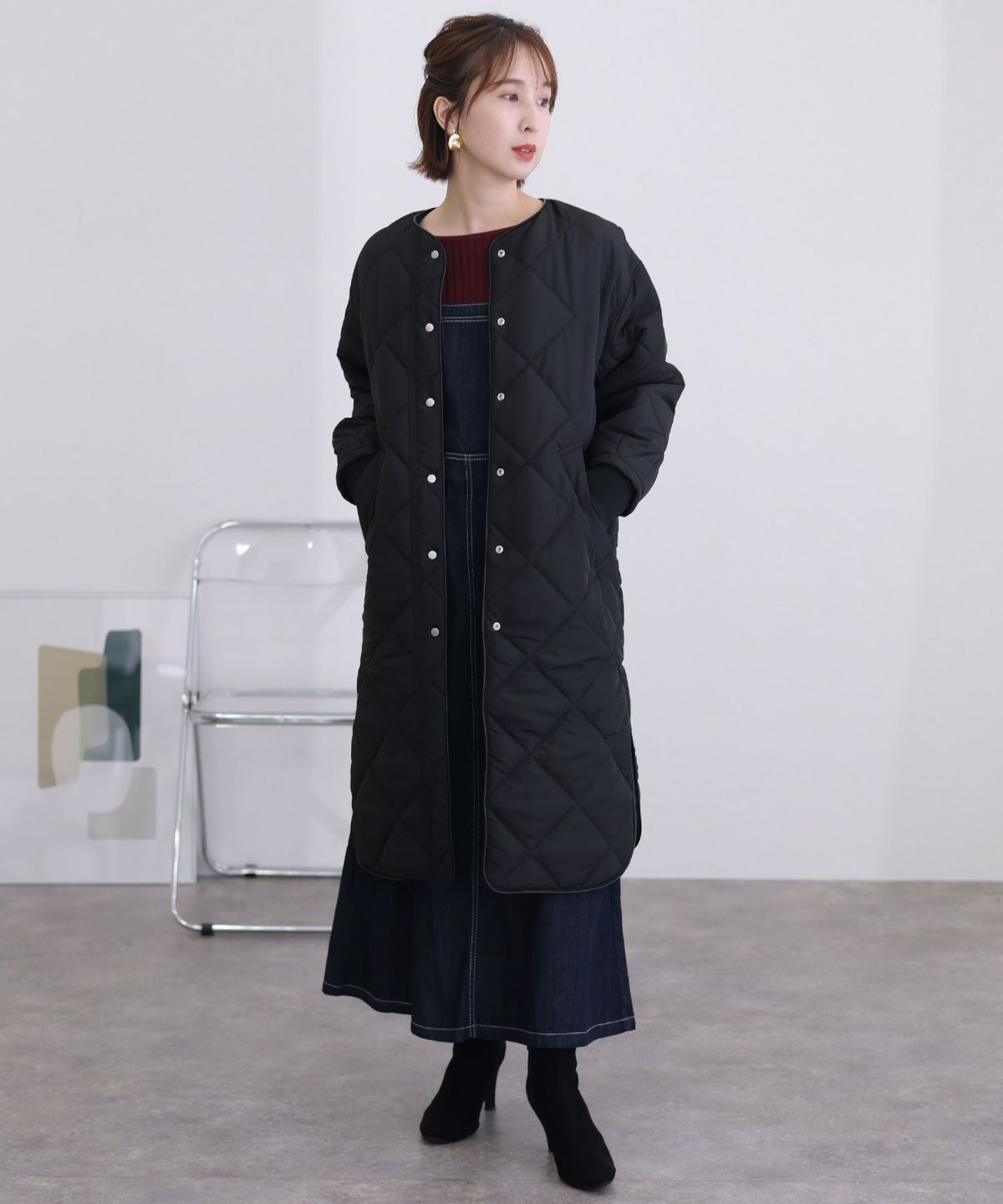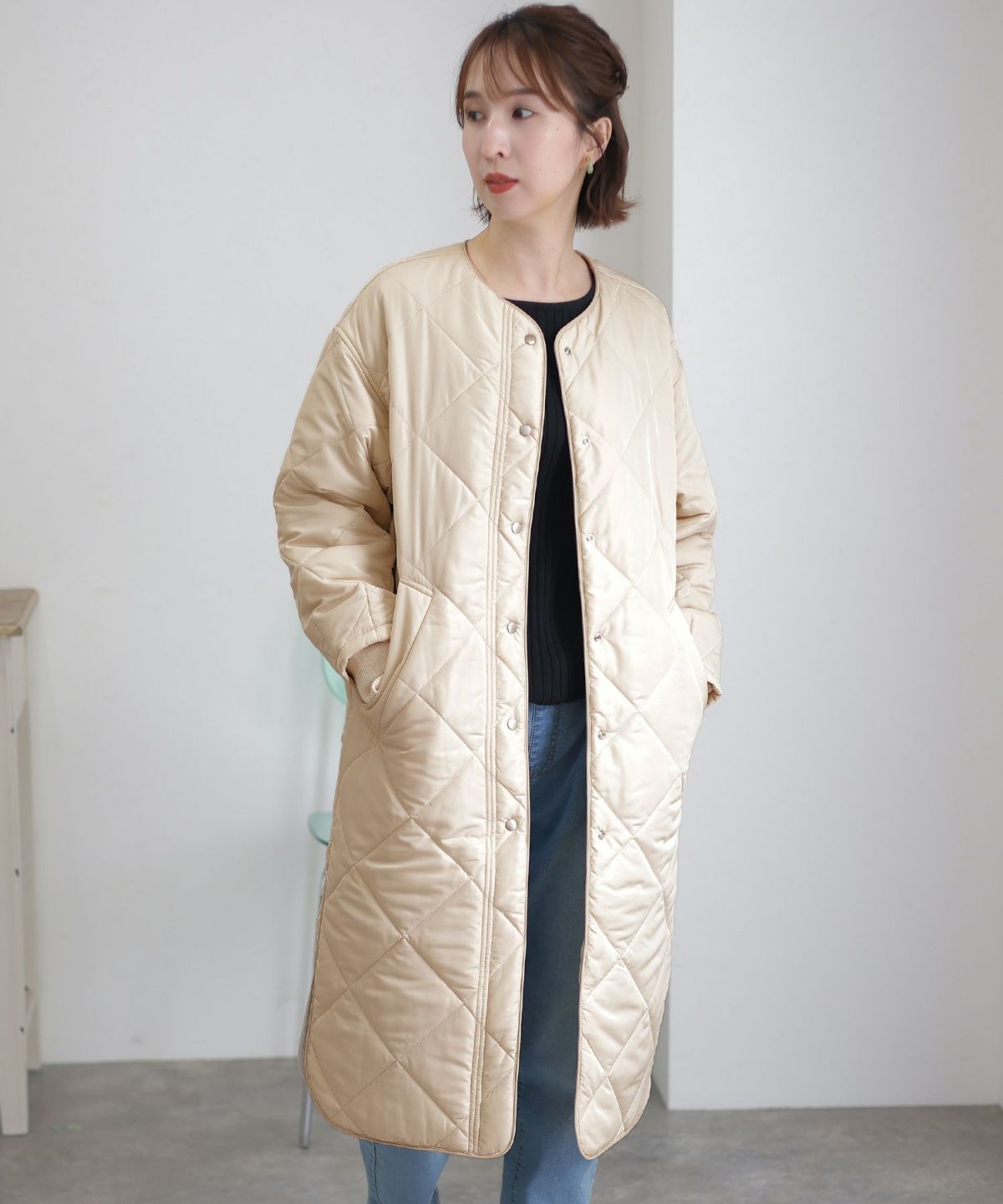 他の画像を見る シンプルで様々なコーデに合わせやすい キルティングノーカラーコート SALE 1~3営業日以内発送 定価 ¥ 22,000 販売価格 ¥ 17,600 税込 在庫切れ カートに入れる お気に入りに登録する
