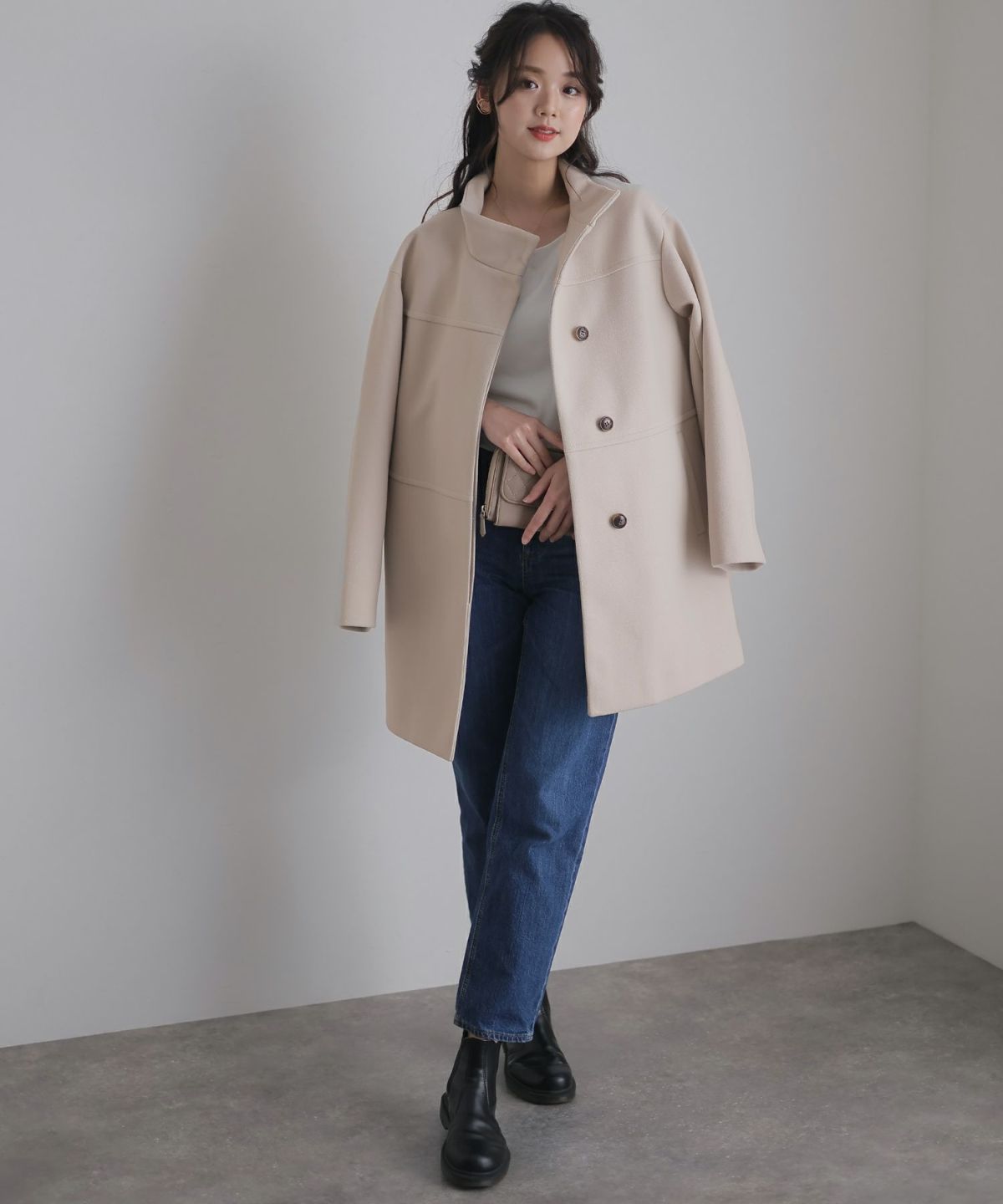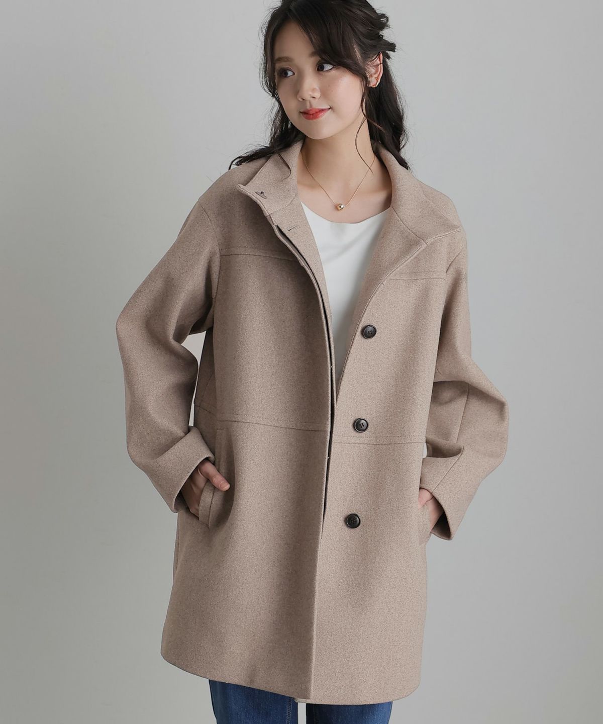 他の画像を見る 知的で大人な印象に フェイクウールスタンドカラーコート 1~3営業日以内発送 クーポン対象外 販売価格 ¥ 24,000 税込 会員特別価格 ¥ 23,000 税込 在庫切れ カートに入れる お気に入りに登録する