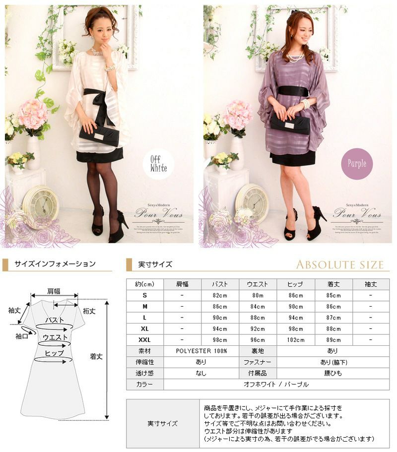 普段着ないパーティードレスを長時間着る事を考えて、きちんと自分に合ったサイズを選んで頂けるように小さいサイズ~大きいサイズまでを取り揃えているので