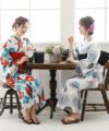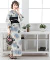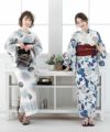 ◆4点セット(浴衣/着付け本/兵児帯/下駄:フリーサイズ23cm~25cm) ◆浴衣素材:綿100%、帯素材:ポリエステル100% |