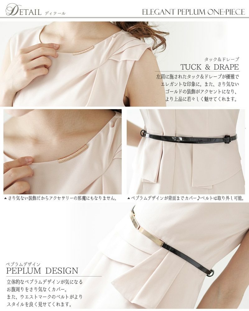 上品で気品あふれるぺプラムデザインのワンピース エレガントぺプラムワンピース