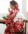 赤地に映える真っ白な兵児帯が、こなれ感を演出します。