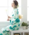 爽やかに咲く 青磁ダリア 浴衣4点セット(兵児帯)