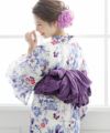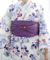 紫の兵児帯が統一感を与えつつ、全体を引き締めます。