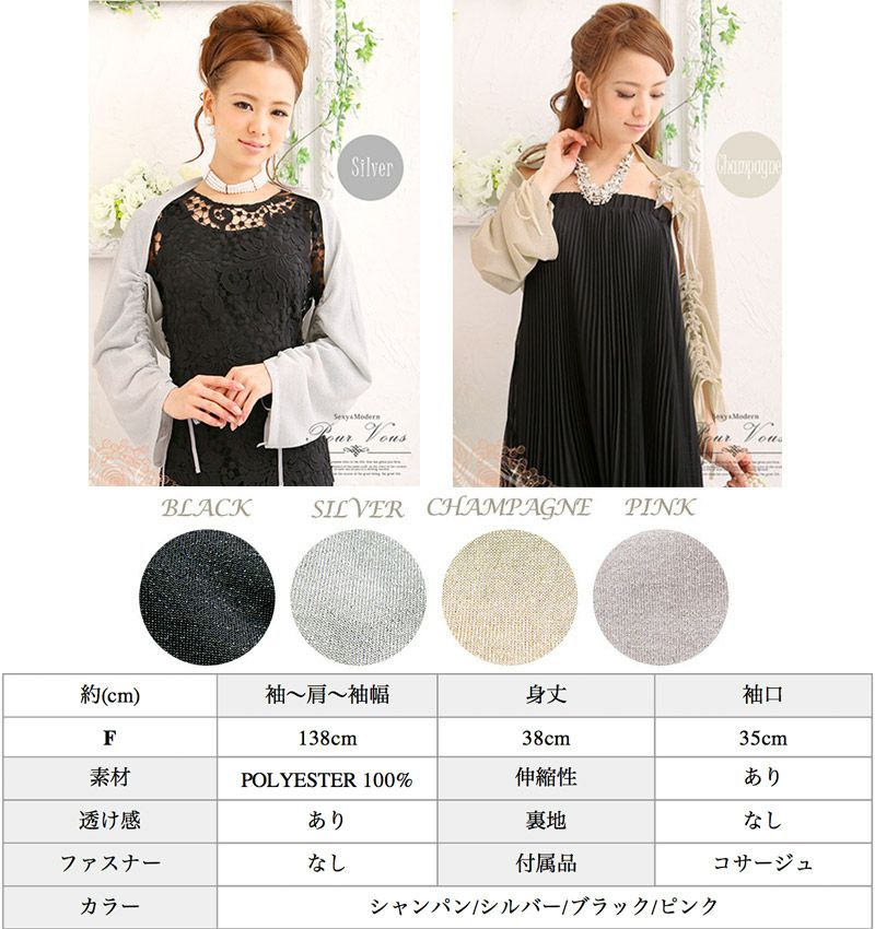 服 ラメ ニット 羽織 ボレロ ストール パーティーショール シャンパン シルバー ドレープ ショート丈 ボレロ