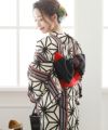 伝統の麻の葉文様 漆黒麻の葉 浴衣4点セット(半巾帯)