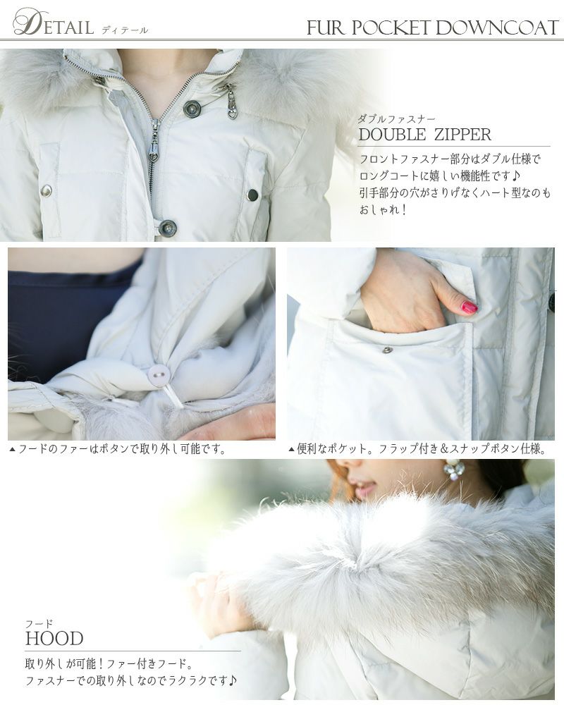ラクーンファー ダブルファスナー ダウンコート