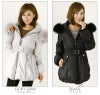 ダウンコート ダウン コート ベルト付き ジャケット 毛皮 ラクーン ブラック ライトグレー お呼ばれ 二次会 同窓会 セレブ エレガント/雑誌掲載