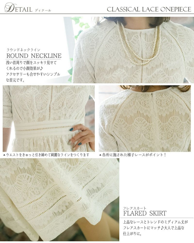 ピュアな女性の魅力を引き出す上品ワンピース クラシカル 総レース ミディアムワンピース