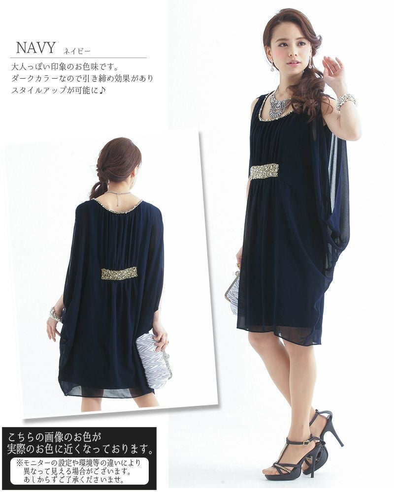 コクーンシルエット ドレープ ビーズ ドレス