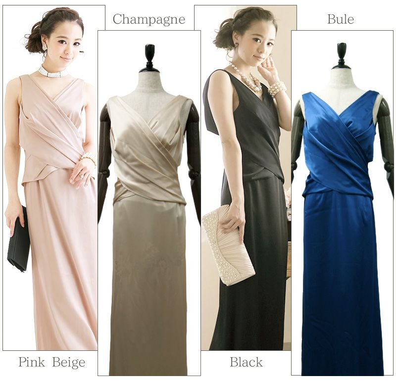 カシュクールサテンロングドレス