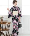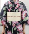 艶やか大輪ユリ 宵に咲く百合 浴衣4点セット(作り帯)