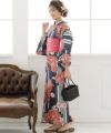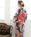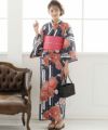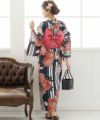 縞紅牡丹 浴衣4点セット(作り帯)
