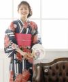 鮮やかな赤の帯が艶やかな雰囲気をプラス。