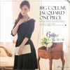 ビッグカラー ジャカード ワンピース 花柄模様 黒