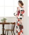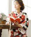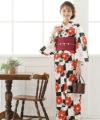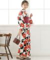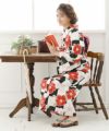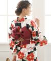 和風ポップな椿柄 市松レトロ椿 浴衣4点セット(作り帯)