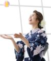 真っ白な帯が濃紺の浴衣に映えて、凛とした雰囲気に。