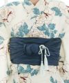 くしゅくしゅした素材のネイビーの帯は、アレンジ自在のオシャレな兵児帯となっています♪
