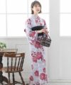 艶やか牡丹が大人可愛い 麻の葉と牡丹 浴衣4点セット(兵児帯)