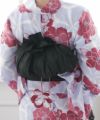 くしゅくしゅした素材の黒の帯は、アレンジ自在のオシャレな兵児帯となっています♪