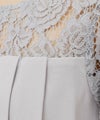 レースの袖が二の腕を程よくカバー。ボリュームあるプリーツがさりげなくウエストをカバー。