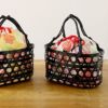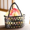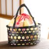 大きめ編み目からのぞく花柄巾着は見た目も可愛く、しっかりマチがあるので収納力もあり、機能性もばっちり♪