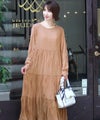 ふわりと揺れるフレアティアードが上品 ロングティアードワンピース