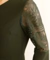 シルエットのかっこいい一枚ですが、レース袖で女性らしいドレッシーな華やかさも引き出してくれます。