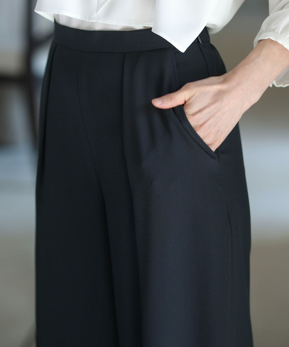 ■ワイド目のシルエットのパンツが気になる下半身をゆったりカバーバックゴム仕様で着心地楽ちん。タックが施されたデザインでさらに動きやすく。