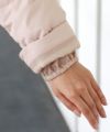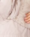 生地と同色のラビットファーをフード部分と裾にふんだんに使用。