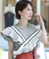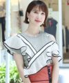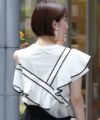 ★アシンメトリーなデザインが可愛いオシャレトップス------------------------------------------------------------アシンメトリーなデザインが特徴的なオシャレなデザイントップス。フリルをたっぷり使ったキュートなアイテムです。