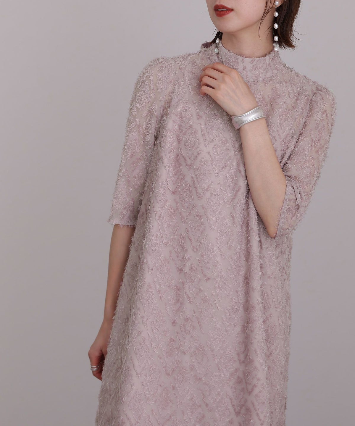 ■動きのある生地で華やかさをプラスフリンジ付き生地が穏やかなボリューム感を出し、エレガントな雰囲気に。もこもこした手触りが特徴です。 ■おすすめ着用シーン【結婚式】【二次会】【同窓会】【食事会】【セレモニー】【発表会】【オフィス】【デイリー】にご利用いただけます。