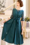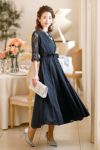 ハイウエストとロングスカートで脚長効果あり☆レース袖で、気になる二の腕も上品にカバー◎
