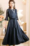 トレンドのレース切り替えが抜け感を感じさせる レース切り替えリボンドレス