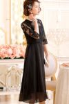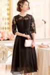 光沢感ある刺繍生地がエレガントな高級感と華やかさを兼ね備えた大人女子ドレスです。