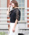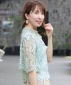 ★透かし編みのレースで上品に------------------------------------------------------------総レースアイテムなので、エレガントな印象に。フェミニンで可愛い雰囲気のトップスなのでデートやお出掛けにもぴったりです。スカラップレースでより上品さを引き立たせてくれます。