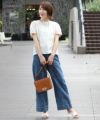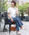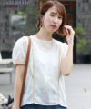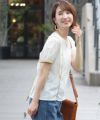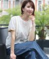 ★ベージュのラインが可愛いオシャレアイテム------------------------------------------------------------ロールアップ風のベージュの袖が乙女心をくすぐるフェミニンなアイテムです。やや透け感がある生地感で、涼し気な印象に。