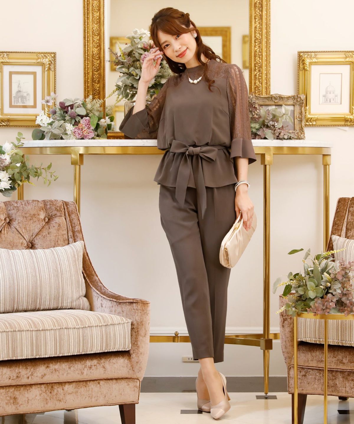 縦レースでおしゃれにスタイルアップ♪ ペプラムパンツセットアップ