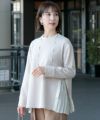 ★素材感------------------------------------------------------------綿混のシンプルできれいめな生地感。プリーツには梨地のやや透け感ある生地を使用。