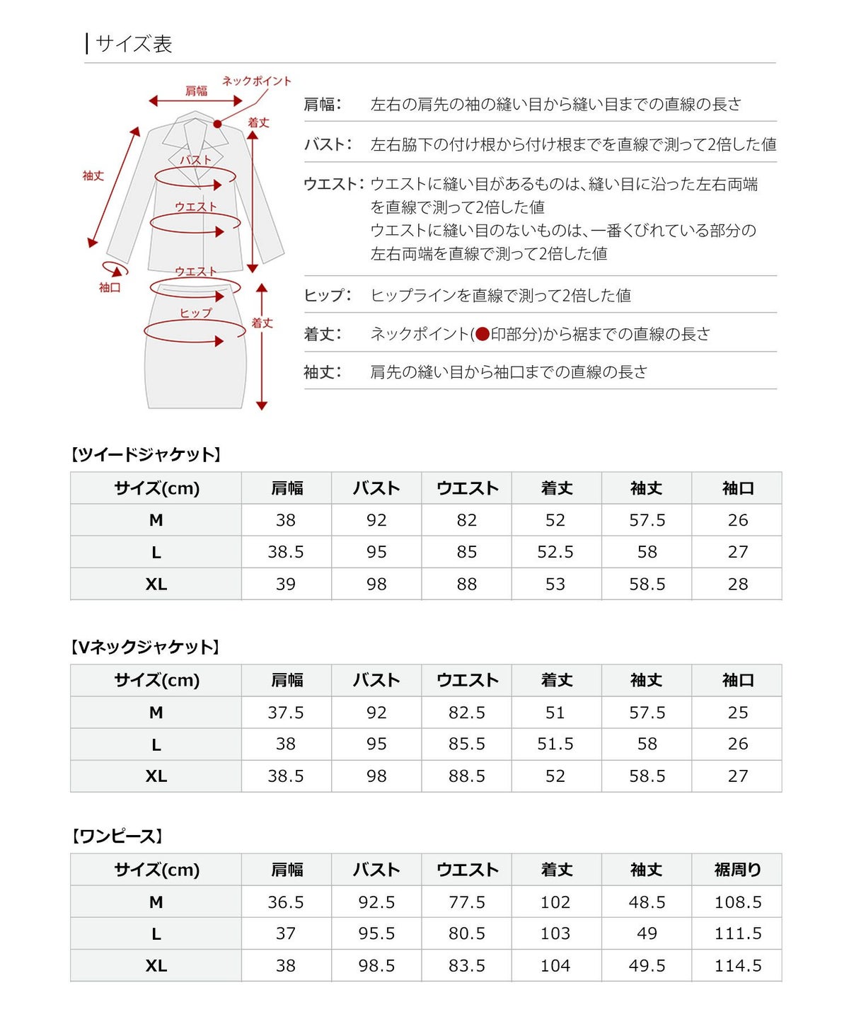 | サイズ表