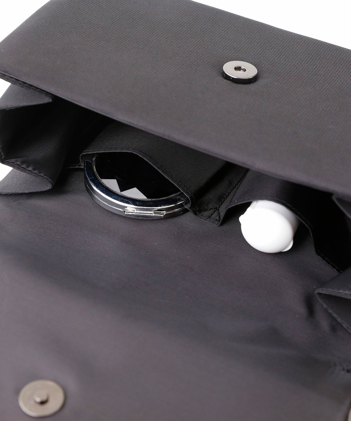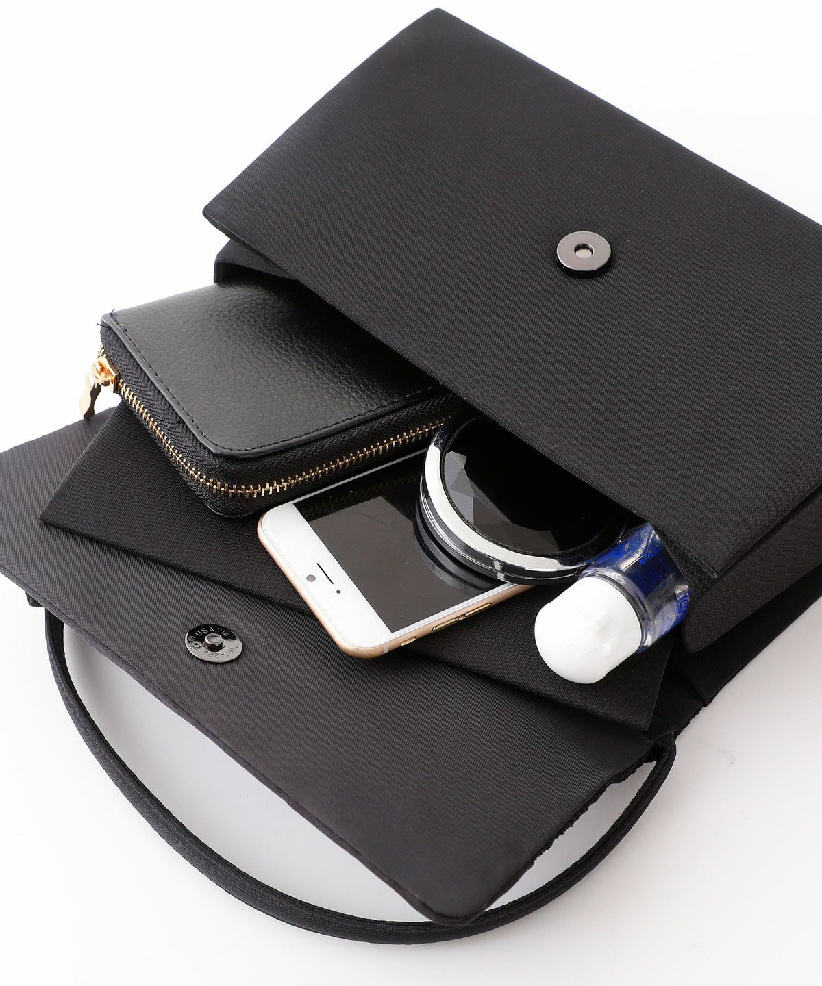 バッグの開閉はマグネット式で、内ポケットにしっかり小物を収納できます。