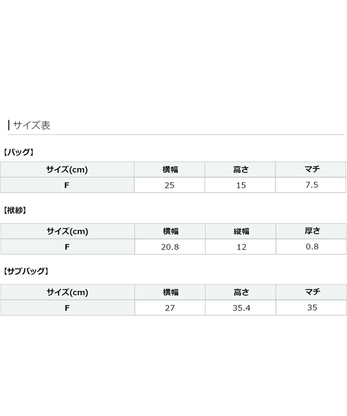 サイズ(cm) 横幅 高さ マチ